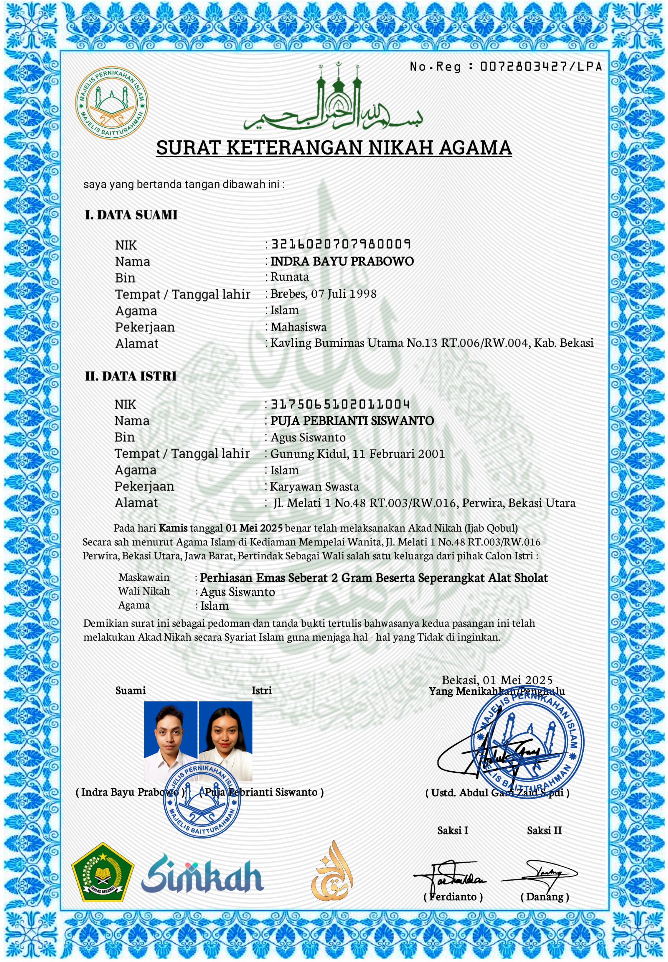 Kami adalah bagian dari Kementerian Agama Republik Indonesia di bawah naungan Direktorat Jenderal Bimbingan Masyarakat Islam yang menyajikan seluruh informasi mengenai pernikahan.