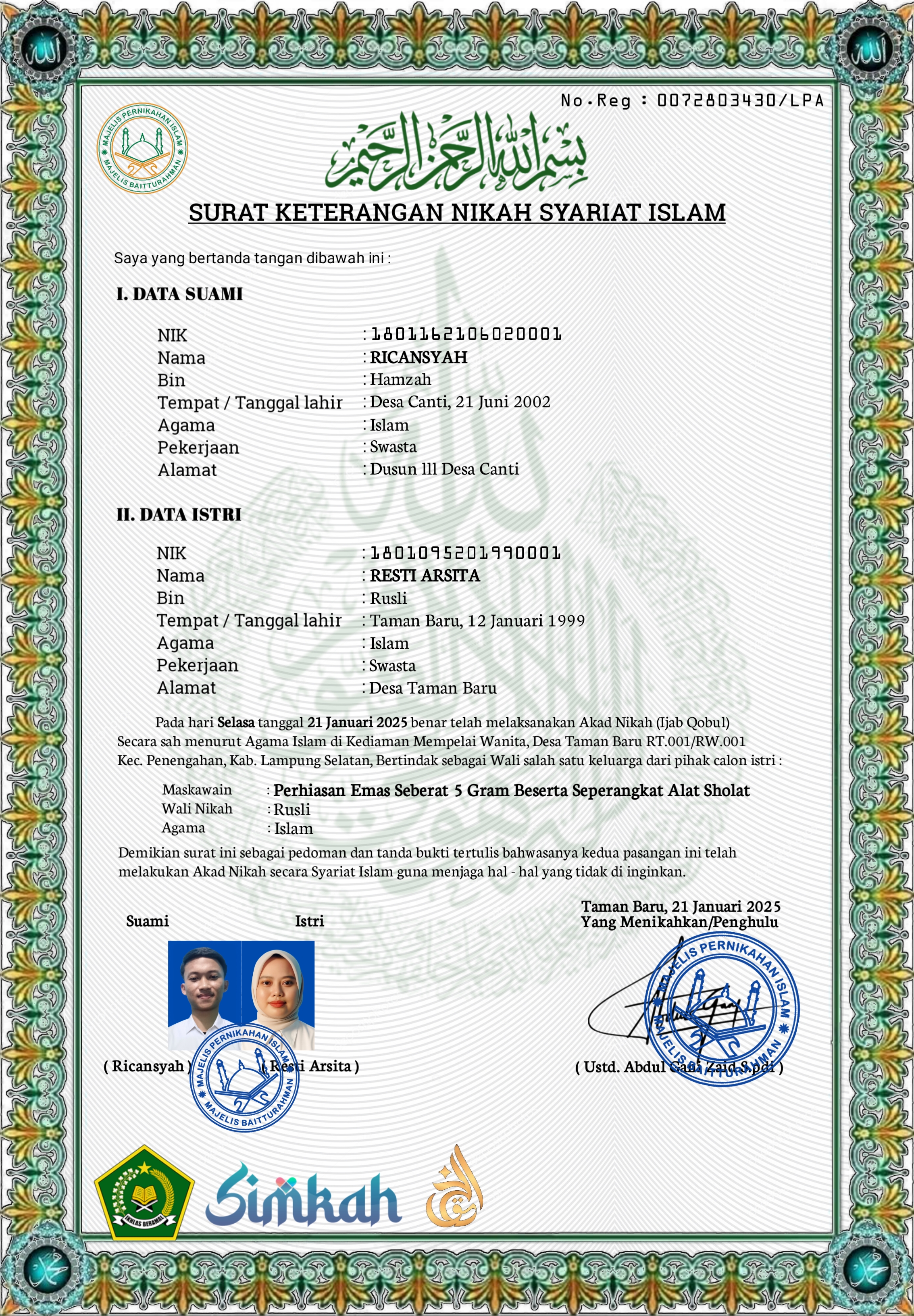 Langkah selanjutnya adalah masyarakat bisa datang ke KUA yang dituju untuk melakukan pemeriksaan nikah dan membawa berkas yang diperlukan paling lambat 15 hari kerja sesuai dengan PMA No. 20 Tahun 2019 Tentang Pencatatan Pernikahan. Jika sampai 15 hari kerja masyarakat tidak juga datang ke KUA yang dituju, maka berkas pendaftaran online akan hangus dan harus mendaftar dari awal kembali.